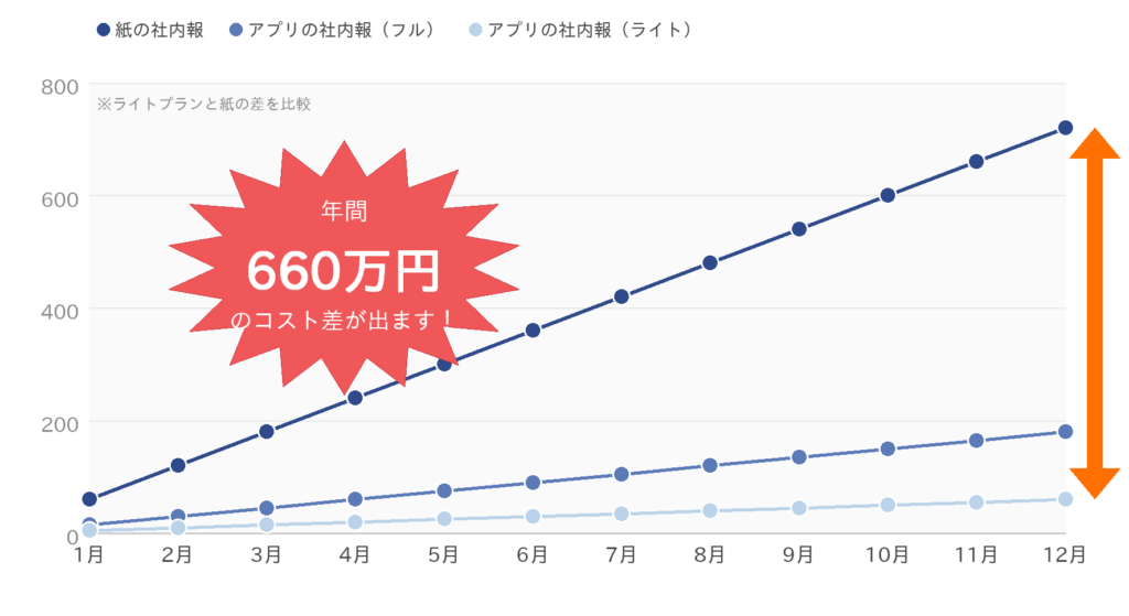 すでに紙の社内報を作成されている場合、アプリに変更するだけでコストの大幅な削減が期待できます!