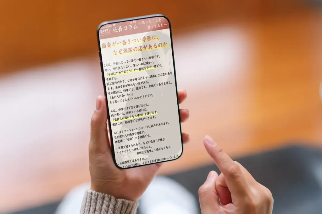 社長の想いや会社の取り組みがいつでもどこでも、マネージャーからアルバイトに至るまで、幅広いスタッフに届きます!